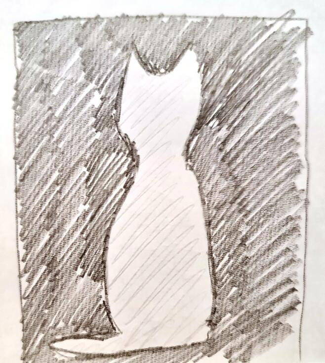 Это упражнение поможет вам более ясно видеть предметы без долгого размышления. Выберите какой-нибудь предмет с интересными очертаниями, скажем, цветок в горшке или собаку. Но не рисуйте его! Вместо этого изобразите, например, форму пространства между лапками собаки и пространство вокруг его. Затем закрасьте эти пространства, чтобы белым осталось только изображение самого предмета.
