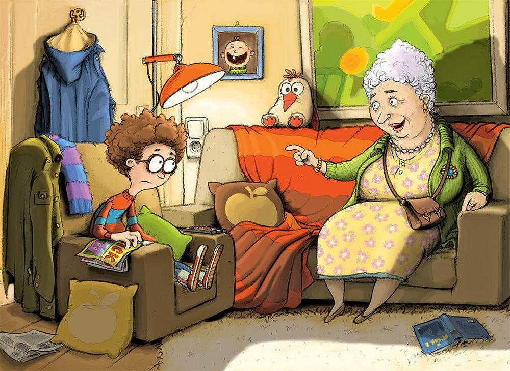 Хедвиг Кюммельзафт стояла в дверях квартиры и удивлённо подняла брови, когда Том добрался до её четвёртого этажа. Она совсем не походила на бабушку Тома. Госпожа Кюммельзафт была худая как веретено и очень высокая, с длинным острым носом и копной белых кудряшек на голове.
