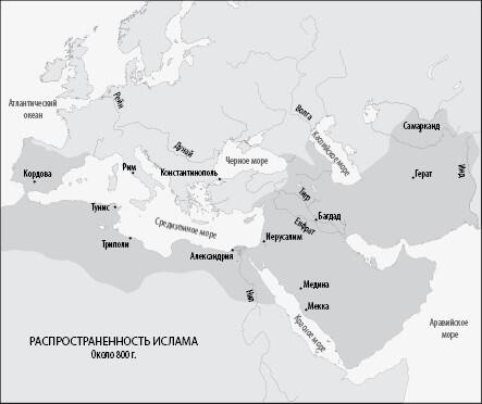 Карта 1.2: Территории, населенные мусульманами, около 800 г. н. э.