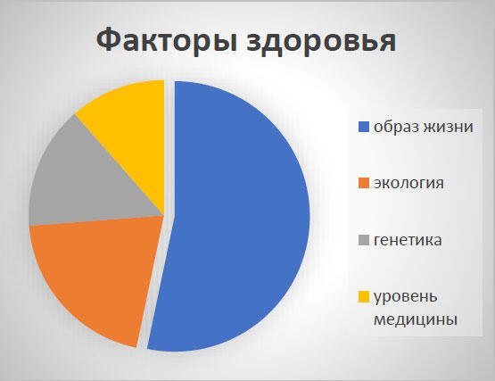 Для сравнения: от генетических факторов эта зависимость определена примерно в 1015 %, от уровня развития медицины в стране 12 %, от экологии 1520 %.