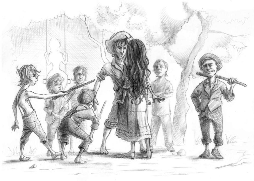 Мальчишки кинулись бежать, несмотря на то, что их было много и они были вооружены палками.