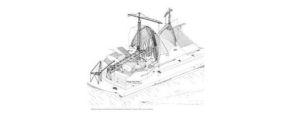 Ж. Уцон лойиҳаси амалга ошириш учун маъқулланди. Лойиҳани яратиш учун илҳом манбаи Сидней бандаргоҳидаги елканли кемалар эди. Опера театри табиий муҳит билан органик тарзда бирлаштирилган. Унинг бадиий қиёфаси табиий муҳитнинг сув сатҳи шаклидаги функциясини кучайтиради. У вертикал равишда ишлаб чиқилган ҳажмларнинг соддалиги, силлиқ текисликларнинг мавжудлиги билан тавсифланади. Ички маконларни шакллантириш томонидан амалга оширилади