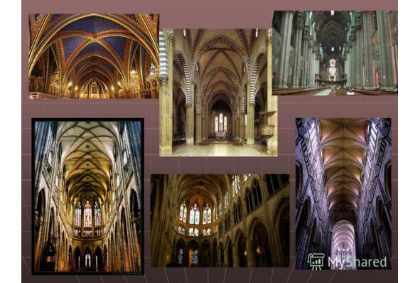 Роман даврининг охирида улар ўзаро фаолият тонознинг массасини улар орасидаги нозик пломба билан кемерли қовурғалар тизимига бўлиш усулини қўллашни бошладилар, бу эса бутун шифт тузилишининг оғирлигини камайтиришга имкон берди. Олдинги қурилиш тажрибаси билан бойитилган готика архитекторлари конструкцияларнинг кесмаларини қисқартиришди ва залнинг шифтини анча енгиллаштиришни таъминладилар, бунинг натижасида қўллаб-қувватловчи устунларнинг қалинлигини камайтириш мумкин эди ва Бу, ўз навбатида, соборнинг учта нефининг маконини визуал равишда бирлаштирди. Бундан ташқари, ўрта қисмнинг деворлари ён қисмларнинг томидан юқорига чиқадиган базиликалар энди улар орасида катта деразалари бўлган бир қатор устунларга айланди, бунинг натижасида соборнинг майдони, Романеск черковларининг маъюс ички қисмидан фарқли ўлароқ, янада ёрқинроқ бўлди.