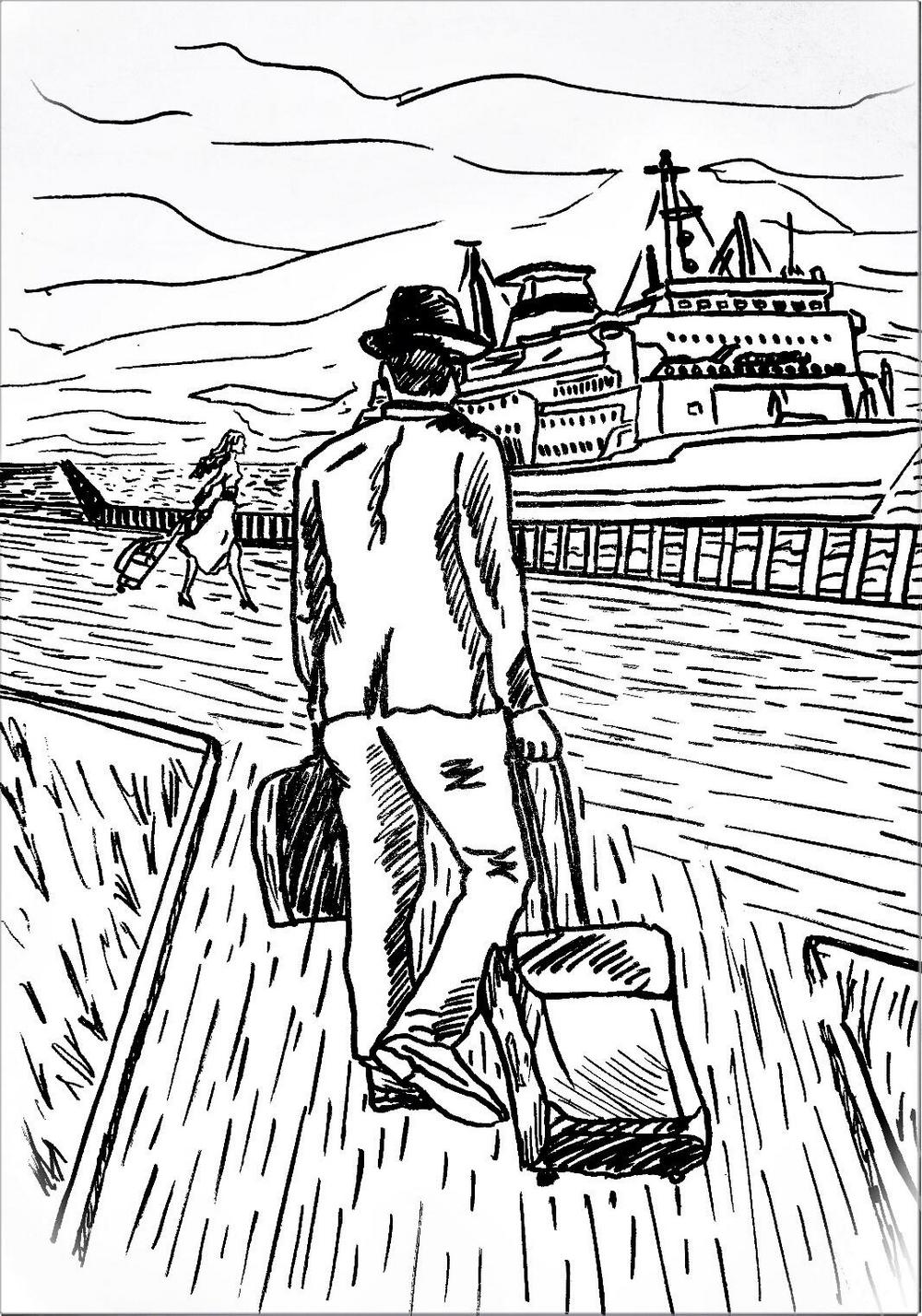 Вот и пристань. Солнце играет на поверхности воды и приятный теплый ветер щекочет мне лицо, повсюду слышны крики чаек и шум проезжающих мимо машин, громкие разговоры людей, стоящих в очередях на посадку. Не очень-то презентабельно выглядит мое судно, если уж честно. Я мог бы себе позволить намного лучше, но его пришлось бы ждать куда дольше, а я не могу здесь больше задерживаться ни минуты. Да и незачем. Комфорт, я считаю, приходит и уходит, и, если всю жизнь за ним гнаться никогда не догонишь. Перед этим судном стоит полная женщина с ярко-красными губами, которые, будто светофор, я увидел издалека.