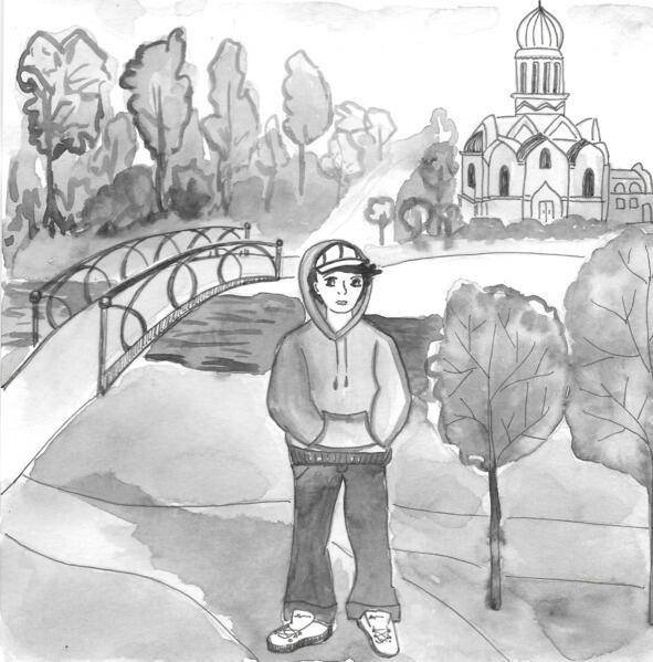 Что же снять, какой ролик сделать? задавал себе вопрос Петя, но пока не находил ответа. А мужчина уже перешёл мостик и спокойно, прогулочным шагом двигался в сторону церкви.
