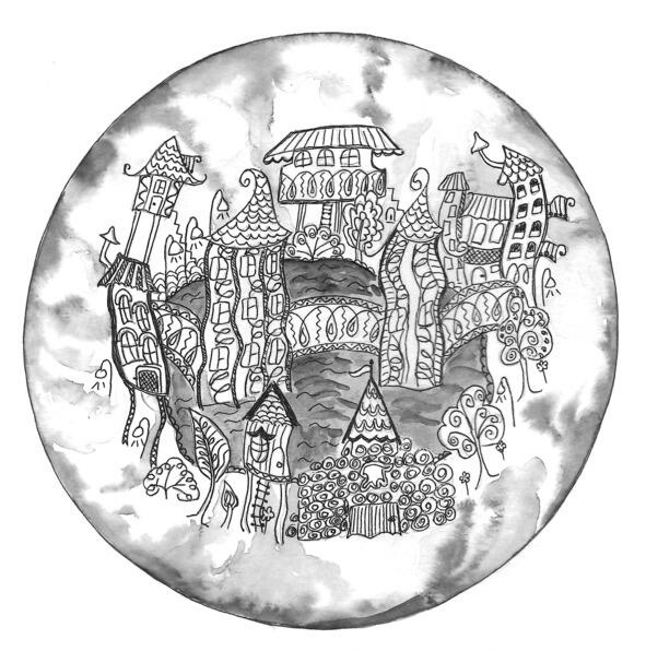 Они стояли на краю огромной каменной вогнутой линзы и смотрели на раскинувшийся внизу городок. А посмотреть было на что. По всему периметру огромной линзы стекали в центр десятки, а может, и сотни маленьких ручейков, образуя большое озеро. А над водной гладью раскинулось ажурное кружево необычного города. Лёгкие резные арки, мостики и дома, казалось, висели в воздухе. Было впечатление, что они созданы из легчайшей ткани, но это был камень. Яркий, причудливый, но камень. Сверху освещало всё это великолепие магическое сине-зелёное светило.