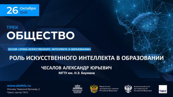 Третье это международный форум «Этика искусственного интеллекта: начало доверия», который состоялся 26 октября 2021 года. В рамках этого форума была организована церемония торжественного подписания Национального кодекса этики искусственного интеллекта, а также мне представилась возможность сделать доклад на тему «Роль искусственного интеллекта в образовании».