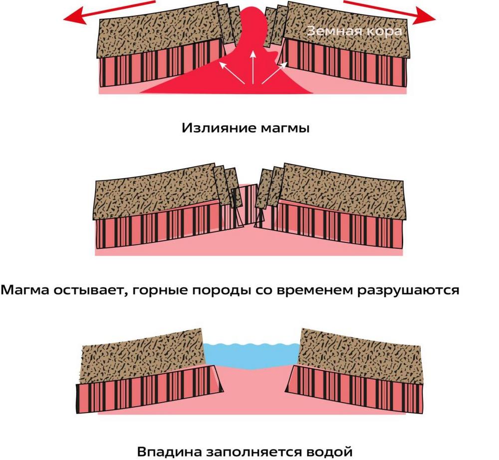 По другой теории, дно Балтийского море рифтовая структура (от англ. rift трещина, расселина). Впадина образовалась задолго до прихода ледника, по причине движения земной коры.