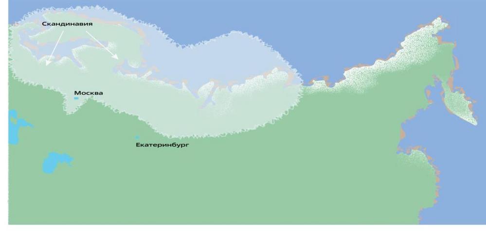 Ледяной покров из Скандинавских гор растекался на запад в Атлантический океан и на юго-восток в Балтийское море.