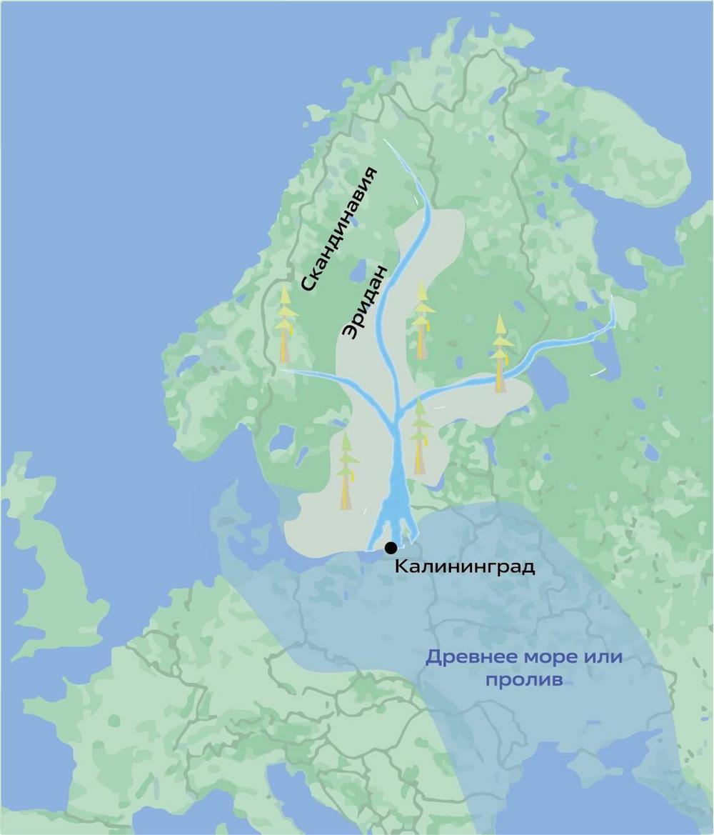 На месте будущего Балтийского моря параллельно Скандинавским горам 40-50 миллионов лет назад лежала долина реки Эридан.
