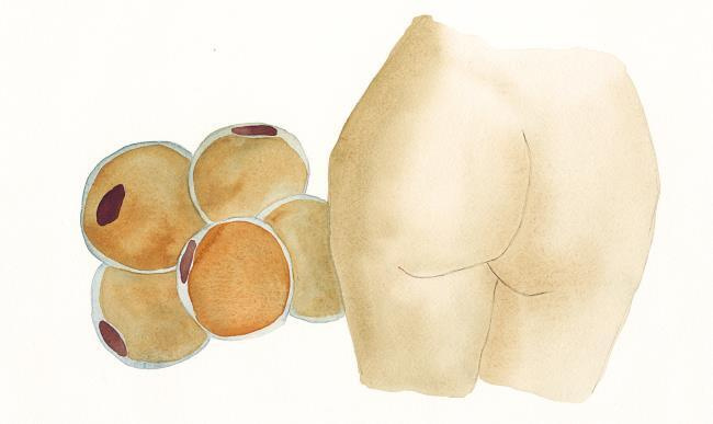 Клетки, накапливающие жир, называются адипоцитами и имеют шарообразную форму