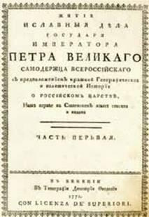 Однако и в России, еще при жизни Петра Великого, нередко при его личном участии, предпринимались попытки описать великие дела первого русского императора. Этим активно занимался Феофан Прокопович современник Петра, ведущий религиозный деятель России того времени. Он пишет историю Петра I. Но на самом деле там описаны лишь события Северной войны до 1713 года. Он так же является автором краткого исторического очерка о России, который вошел позже как предисловие в Морской устав Петра I (иногда ошибочно его выдают за личное творение Петра).