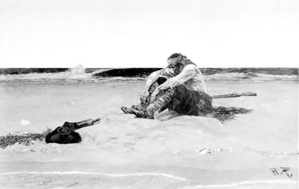 Высадка. Говард Пайл. Иллюстрация из «Пиратов и буканьеров Испанского Мэйна». Первая публикация в журнале Harpers Magazine за август и сентябрь 1887 года