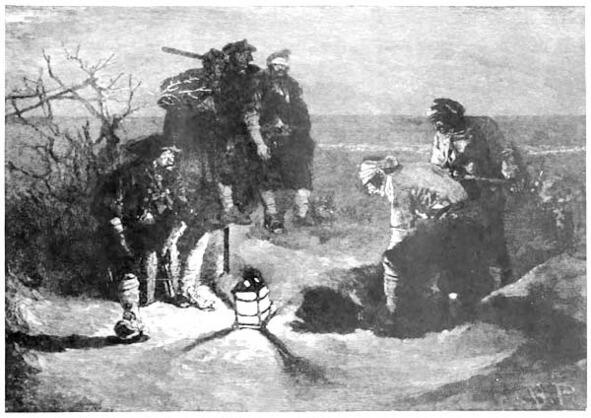 Черная Борода зарывает свое сокровище. Говард Пайл. Иллюстрация из «Пиратов и буканьеров испанского Мэйна». Первая публикация в журнале Harpers Magazine за август и сентябрь 1887 года.