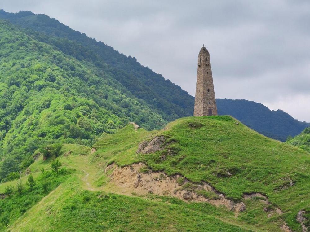 На посту в Харачое остановились. Пока пограничники в бронежилетах проверяли документы, Марина вышла из машины и огляделась. На покрытые тёмной зеленью горы наползали серые облака. Неужели всё-таки дождь? Она стала фотографировать сторожевую башню на зелёном холме, возвышающуюся над дорогой.