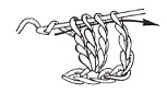 Ему соответствует 3 или 4 петли подъема. Рабочую нить накидывают на крючок, вводят его в петлю цепочки, подхватывают с указательного пальца левой руки нить, протягивают ее через петлю и вытягивают на длину столбика с накидом (примерно 11,5 см). Еще раз делают накид и из той же петли вывязывают длинную петлю.