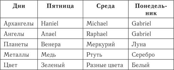Архангелы и ангелы дней недели, металлов и цветов, соответствующих каждой планете