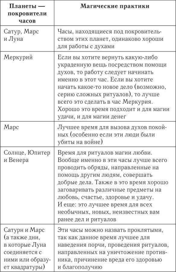 Если же вы не можете по какой бы то ни было причине проследить перемещения Луны, то постарайтесь проводить приведенные в таблице обряды тогда, когда Луна видна на небе (днем!). Особую осторожность следует проявлять тогда, когда Луна на небе не видна (она как бы сливается с Солнцем).