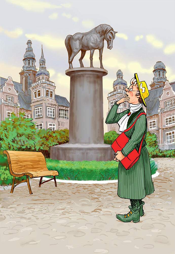 Скульптор, который делал статую, закончил коня и захотел получить деньги, чтобы вечерком пойти в кофейню и выпить кофейку. И тут кассир в мэрии обнаружил, что касса пуста.