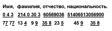 Даже самый беглый анализ (сравнение) дополнительных цифр показывает, что между словом имя и словами фамилия, отчество и национальность прямой связи нет, так как цифра 7, составляющая весь ряд дополнительных цифр в слове имя, в наборах дополнительных цифр других слов не значится. Это даёт нам право проводить исследование только имени человека, не дополняя его отчеством, фамилией и национальностью.