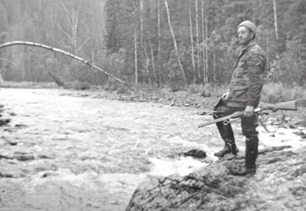 13 октября. Всю ночь шёл дождь. От снега не осталось и следа. С утра заделывал стены тамбура у зимовья жердняком, чтобы снег не попадал. Вышел в 12 часов с расчётом к вечеру быть в Центральном, но не тут-то было. Подошёл к броду через Проклятую и ахнул. Вчера я легко перешёл её здесь. Вода на перекате была лишь до колен. Сегодня с рёвом несётся поток. Два-три шага от берега, и уже захлёстывает в болотники. Что тут будешь делать? Раздеваться и переходить по пояс в воде велика опасность простудиться, а то, чего доброго, ещё и с ног собьёт. Пораскинул мозгами и повернул назад. К темноте был в Остяцком. Добыл рябчика.
