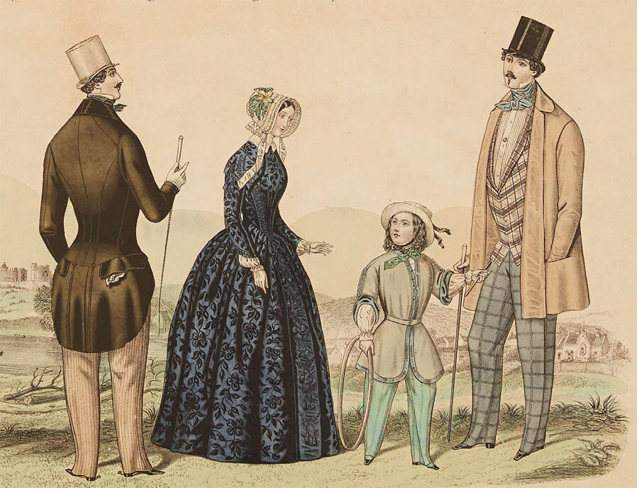 На этой иллюстрации из журнала American Fashions 1847 года представлена семья в типичной для середины XIX века одежде.