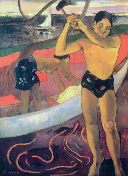 Одним из новых образов, появившихся в живописи Гогена на Таити, стал человек с топором. Герой Гогена как бы разрубает связь, которая оставалась у художника с Европой. Во многом именно Гоген стал первым мастером, с которого началось подражание неевропейским культурам, и европоцентризм в живописи закончился. Это связано не только с обращением к новым мотивам, но и с новым способом работы с пространством, объёмами, ракурсами, красками.