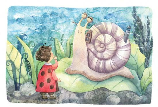 Улитка проводила взглядом два маленьких пятнышка красное и голубое, поудобнее устроила домик на спине и поползла за ними. К морю.