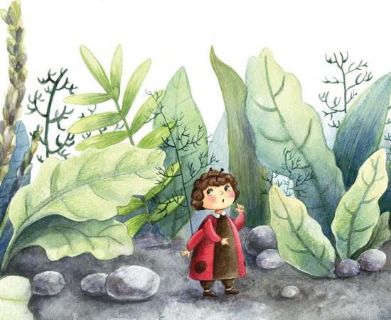 Божья коровка захотела рассказать мотыльку про море и полезла на травинку. И тут подул сильный ветер. Тонкий стебелёк согнулся до земли, но малышка крепко держалась за него. Когда травинка выпрямилась, Иришка огляделась и увидела мотылька. Он храбро качался на соседней травинке.