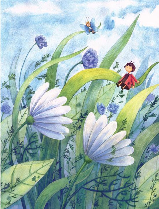 Сильный порыв ветра снова согнул травинку, и Иришка чуть не упала. Она так сильно вцепилась в стебелёк, что пятнистый панцирь на её спинке лопнул, а из-под него показались тонкие полупрозрачные крылышки. Они распрямились и быстро-быстро заработали.