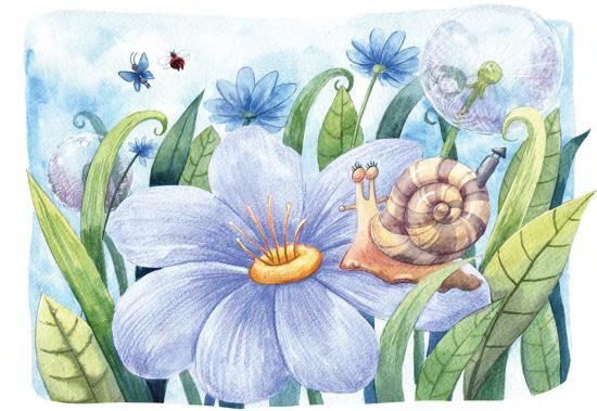 На одном из них сидела маленькая улитка. Издалека казалось, что она спит. Но улитка не спала. Она слушала музыку, звучавшую в её домике.