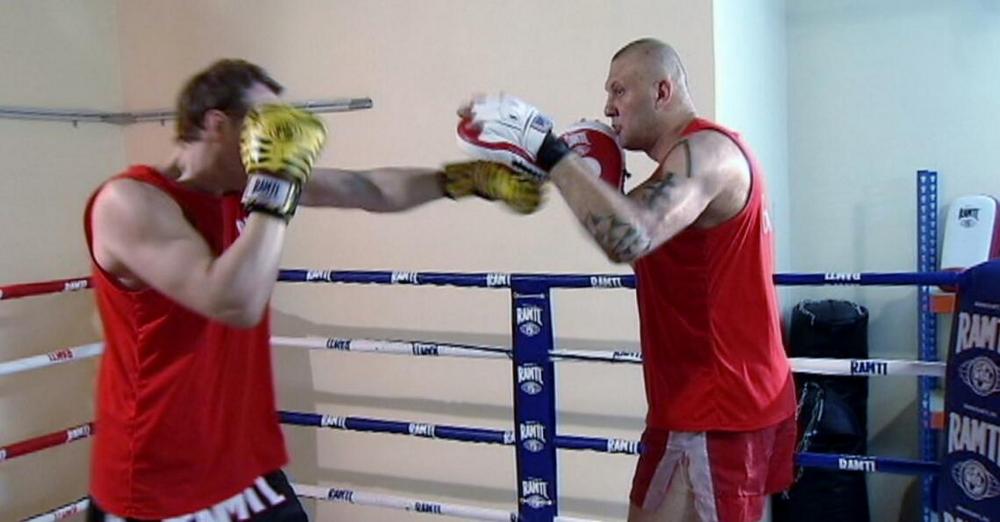 2011-06-23. Moscow (RUS). VIP-RAMTL GYM. Radu Sprighel (NYC, USA) hold at pads.