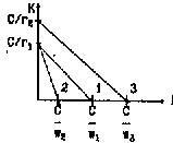 Если w цена услуг труда (ставка заработной платы), r цена услуг капитала (ставка процента), то располагая определенным бюджетом С, производитель может купить К единиц капитала и L единиц труда:
