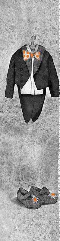 Витя Пряников пришёл во фраке. Фотографа он ждал с важным видом, будто режиссёр на вручении премии. Потом появился Витин друг Митя Ягодкин, который загадочно улыбался. Митя выпрыгнул из комбинезона и явил себя в смокинге. Два джентльмена оглядели друг друга и сухо поздоровались. Фотограф всё не шёл. Джентльмены решили скоротать досуг за игрой в самосвал. Самосвала на всех не хватило. Возникло столкновение. Раздался рёв. Смокинг был помят, а фрак надорван. Друзей развели в разные стороны и запретили встречи до полдника. Самосвал одиноко краснел кузовом в углу.