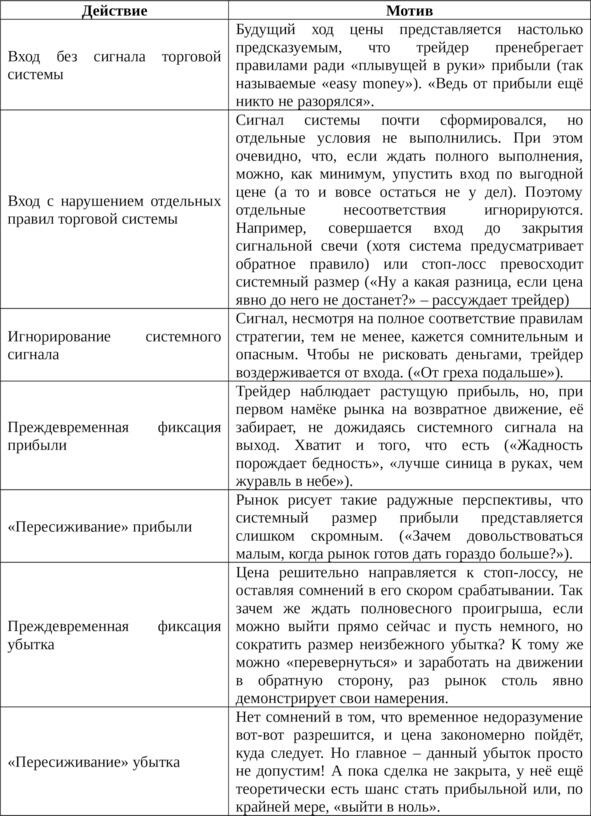 За каждой из этих торговых ошибок скрывается та или иная мотивация (Таблица 2).