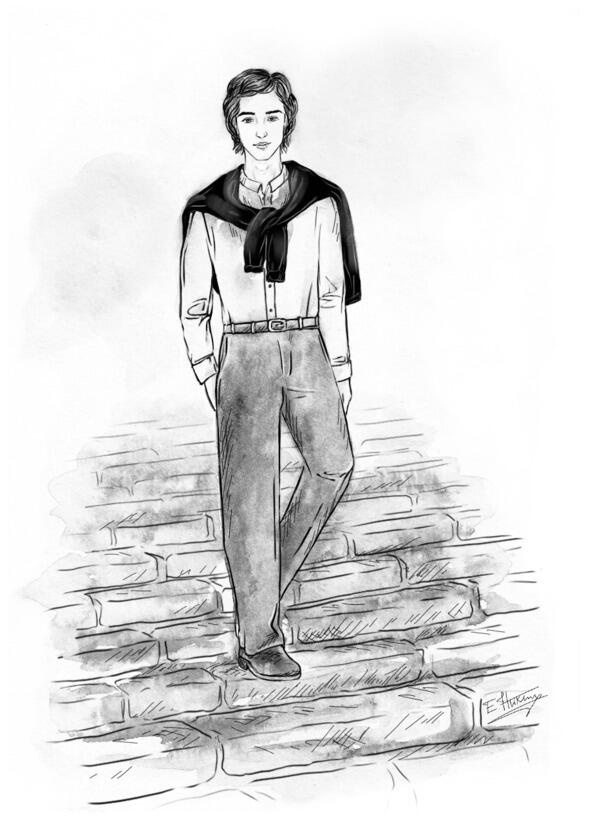 По лестнице спускался парень. Его черные волосы вились, а из-за доброжелательной улыбки проступали ямочки на щеках. Поверх белой рубашки на плечах был завязан джемпер в синий ромб. Настоящий студент-англичанин. Он шел вальяжной походкой, а правая рука была небрежно засунута в карман брюк. Туфли были начищены до блеска.
