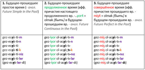 2. Группа будущих-прошедших времён (2-й тип времён личные аффиксы, как в прошедшем категорическом вр.)