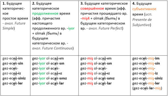 1. Группа будущих времён (1-й тип времён личные аффиксы, как в настоящем продолженном вр.)