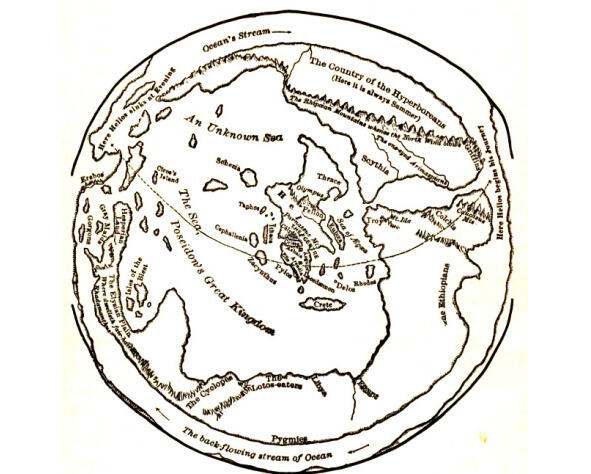 И затем Фемий, как он часто делал, начал облекать свои слова в форму музыки; и запел песню про мир, каким он себе его представлял. Он пел о Гелиосе-Солнце, и о его пылающей колеснице и четырех белых конях, и о чудесном путешествии, которое он совершает каждый день над землей; и ещё он пел о снежных горах Кавказа на далеком востоке; и о садах Гесперид, простирающихся ещё дальше на запад; и про страну гипербореев, которая лежит за северными горами; и о солнечных краях, где живут эфиопы, самые далекие из всех обитателей земли. Затем он запел о текучем потоке Океана, который заключает в свои объятия все земли мира; и, наконец, об Островах Блаженных, где правит белокурый Радамант1, и где нет ни снега, ни проливных дождей, но вечная весна, и ветры благоухают дыханием жизни.