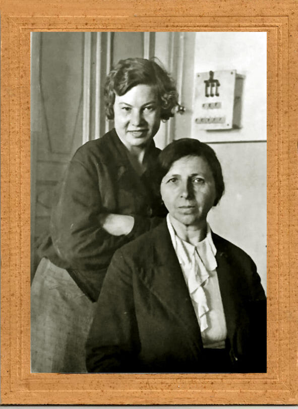 Прасковья Ивановна Чивкунова (справа) родная сестра Евдокии Ледяевой (Чивкуновой), 1940 год