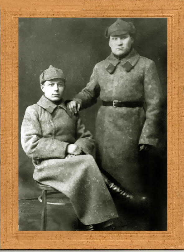 Илья Иванович Чивкунов (слева) родной брат Евдокии Ледяевой (Чивкуновой), 1924 год