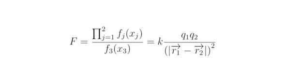 Хорошо известно, что сила Кулона прямо пропорциональна f1 (x1) и f2 (γj=1), но обратно пропорциональна f3 (x3) (γ3=-1).