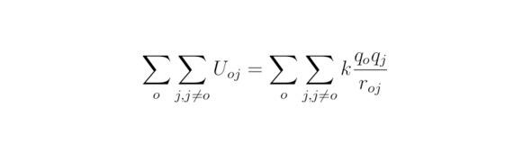 где roj расстояние между частицами под номерами o и j, qj, qo заряды частиц, k коэффициент пропорциональности.