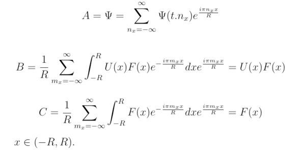 Осуществляя поиск аналитического решения уравнения Шрёдингера, необходимо разложить в ряд Фурье величину ψ, а также выражения F (x) и U (x) F (x), следовательно: