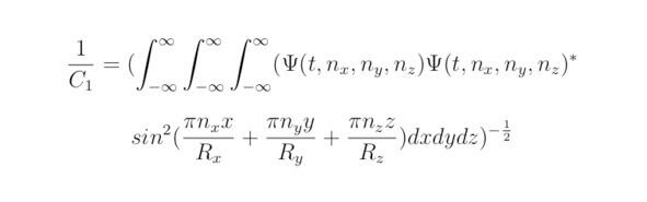 Под обозначением ψ* понимается комплексно сопряжённая волновая функция. Плотностью вероятности появления частицы в точке с координатами (x,y,z) называют соотношение ψψ*. Коэффициент C1 можно определить исходя из тождества ограниченности вероятности: