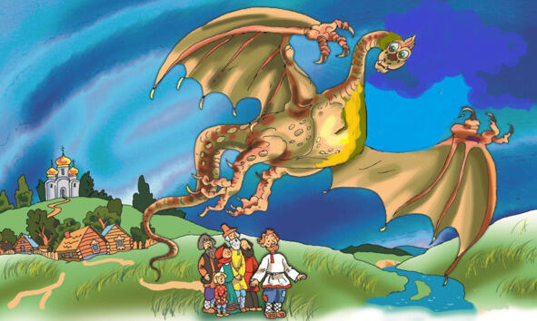 Задумался тут Змей, вспомнил лягушкины слова: «И одна голова неплохо, лишь бы правильно соображала!». Стал он соображать: темечко почесал, поскрёб затылок, в ноздре длинным когтем поковырял Вроде что-то и надумал. Да и говорит мужику: