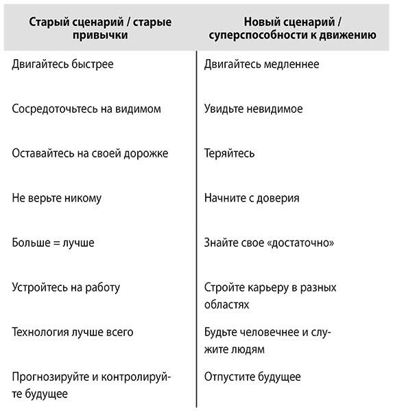 Каждая суперспособность помогает взглянуть на перемены иначе, развить на них другую реакцию и в итоге поменять к ним отношение. Вместе взятые они позволяют вам жить с надеждой, а не со страхом, с удивлением, а не с тревогой, с любопытством, а не в ступоре. Как дальше станет ясно из отдельных глав, каждая суперспособность полезна сама по себе, но вместе они усиливают друг друга. Во многих случаях вы уже обладаете ими или как минимум их зачатками. Однако часто суперспособности скрыты, захоронены и невидимы. Им не дают проявиться силы, люди и организации, защищающие старый сценарий. Принятие установки на движение поможет вам их раскрыть, заново открыть и применить и поверьте, сделать это вполне реально. Более подробно они описаны в таблице 2.