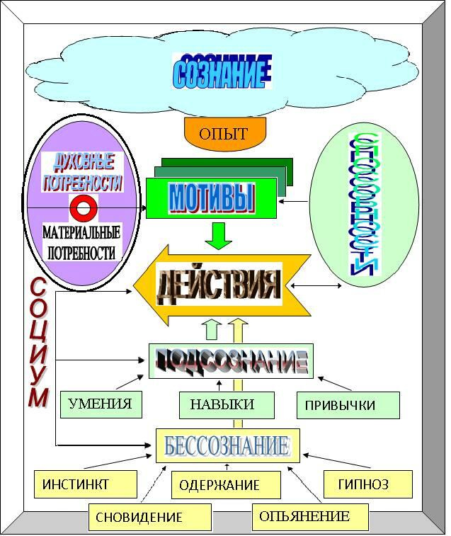 И так, начнём вместе рассматривать все вопросы снизу-вверх от бессознательной деятельности до сознательной. Сначала рассмотрим бессознательную деятельность личности.