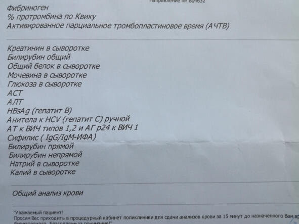 В список включены вообще все возможные исследования, а каждое отделение выбирает из него несколько своих пунктов. Так, я сдала анализы мочи (общий) и крови (какие именно, подробности на фото ниже), взяла справку от стоматолога о санации полости рта, от гинеколога и терапевта об отсутствии противопоказаний к операции, привезла с собой свежий (этого года) результат флюорографии. На этой неделе останется еще сдать кал на яйца гельминтов, сделать УЗДГ артерий и вен нижних конечностей (поскольку есть варикоз) и ЭКГ, а еще сдать мазок ПЦР на коронавирус (так, чтобы результат был готов к 9 утра 10 августа).