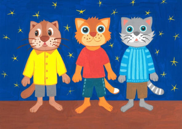 Серьёзный кот был против, но кот с веснушчатой мордочкой и котёнок с озорными глазами уговорили серьёзного кота принять приглашение пинитролля.